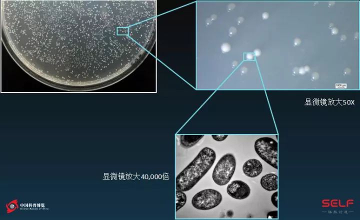 怎么让大家做出更理想的选择呢?我们这个“基因计算机”或者我们在细胞里编程序这件事就有用了,我们可以在细胞里编程序,让细胞把它生理代谢活动的所有能量,都用于生产聚羟基烷酸酯,简称PHA。比如我们做的第一代,细胞里就有大块白色颗粒了,我们还可以做第二代,细胞已经很“胖”了,还可以做第三代,细胞已经是“超级大胖子”了,里面90%的质量差不多都是PHA了。