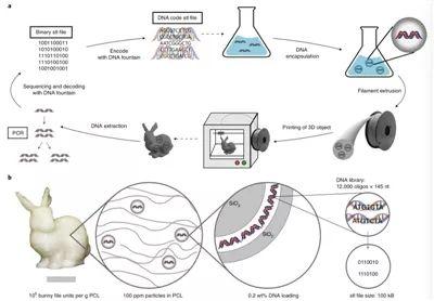 今年12月,哥伦比亚大学著名专家、以色列计算遗传学家亚尼夫·埃尔利赫与苏黎世联邦理工学院报告了一种运用“万物DNA”特殊材料3D打印出来的“兔子”,该材料包含了用以合成DNA编码的兔子蓝图。之后,原始兔子所含的DNA被解码,并稳定复制了五代兔子。这种新的存储架构,意味着DNA存储的潜力又被进一步拓展。