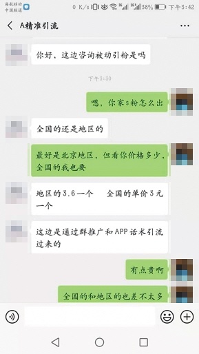 记者向引流黑产咨询引流价格。