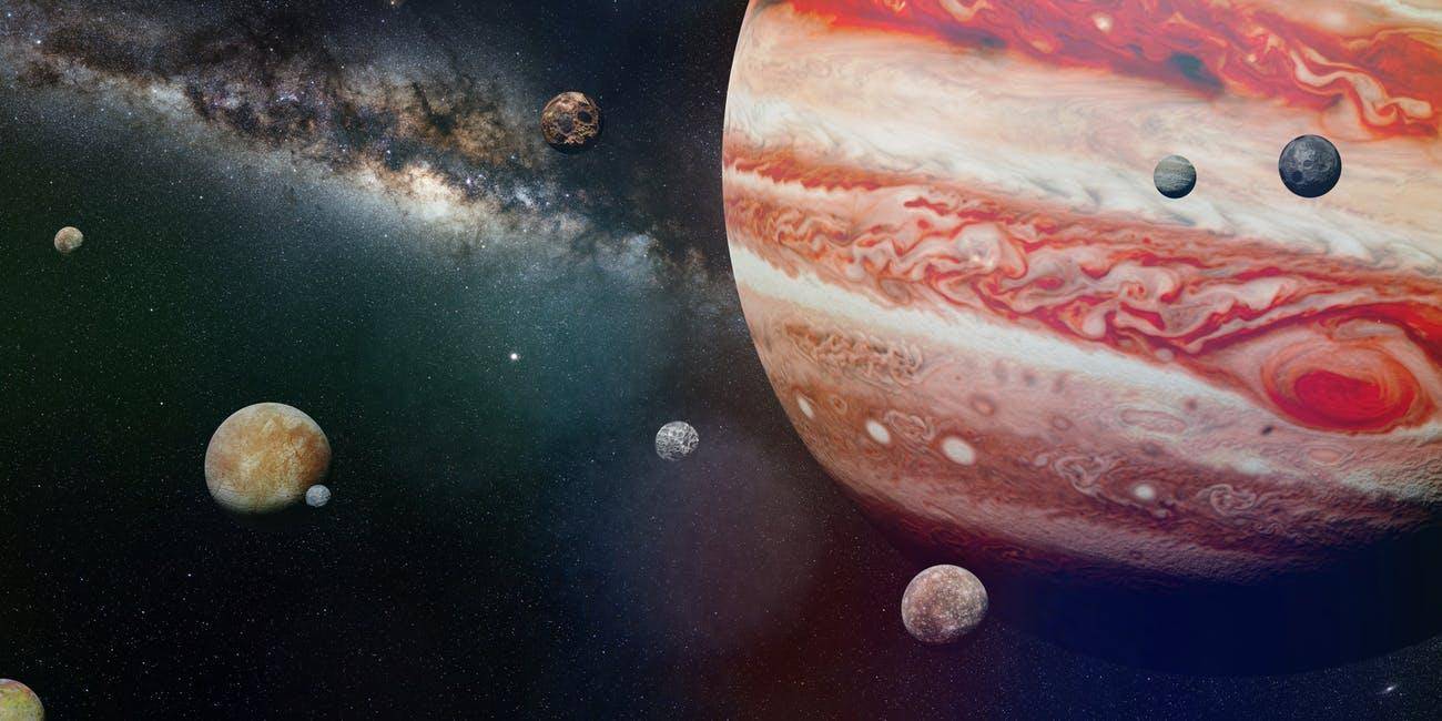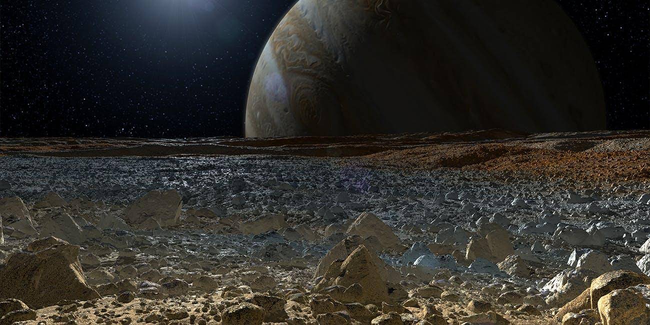 图释:站在木卫二的冰层表面看木星 图源:inverse