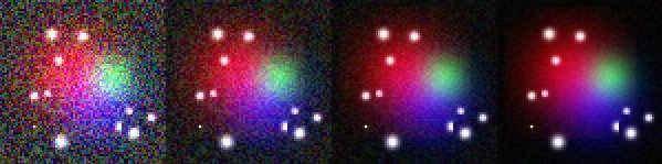 以上是对星级增加的恒星的情况模拟,其信噪比在2:1和16:1之间。下面在人造星云上完成了一次类似的测试。
