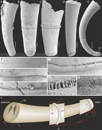 南京地质古生物研究所副研究员殷宗军介绍,他们发现的这种断壳桶螺壳体弯曲,横切面圆形或亚圆形,壳顶为颈状结构。依据壳体表面结构,可识别出断壳期及断壳间期。他们在电镜观察的基础上,采用高分辨率X射线三维无损成像技术,对断壳期不同发育阶段标本进行了三维重构,复原了桶螺壳体内部双层隔板形成、壳体外侧圆环形成和壳顶断落的完整过程。