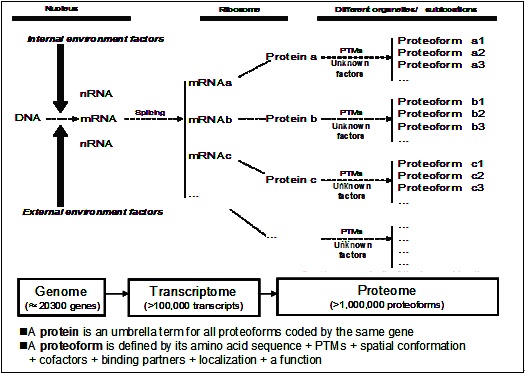 蛋白质存在形式的概念及形成模式 (Zhan et al, Med One, 2018; Zhan et al., Proteomes, 2019)