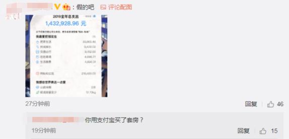 有位网友晒了一张143万的账单,底下有评论:你用支付宝买了套房?