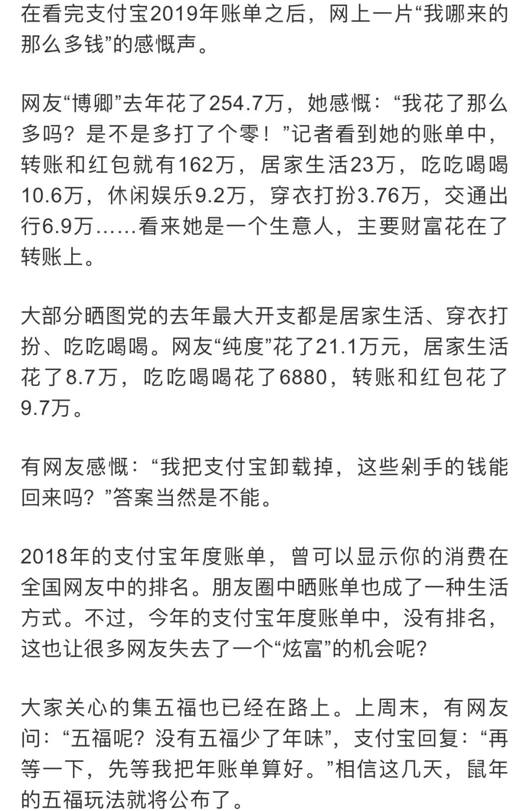 今早支付宝2019年度账单出炉了,不少朋友又发出了灵魂拷问:“我哪有这么多钱?”