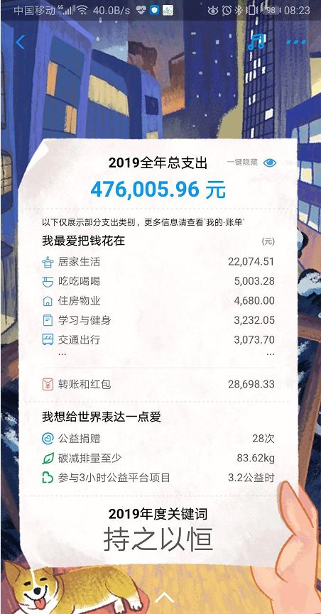 另外,也有不少网友看完账单之后表示消费总额与自己的实际消费不符,数额高了很多。支付宝也是做了紧急回应。蚂蚁金服方面称,今年支付宝年账单没有总消费的概念,全部调整为总支出,会比去年增加投资理财、金融保险、人情往来、公益慈善、转账充值这几个版块,因此大家看到的年度总支出金额预计会比较高。支付宝不是只有花钱,其实是在帮大家管钱。
