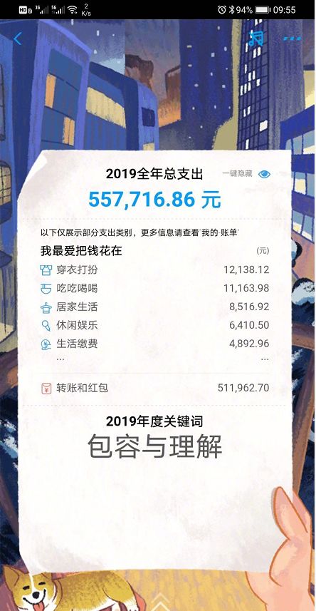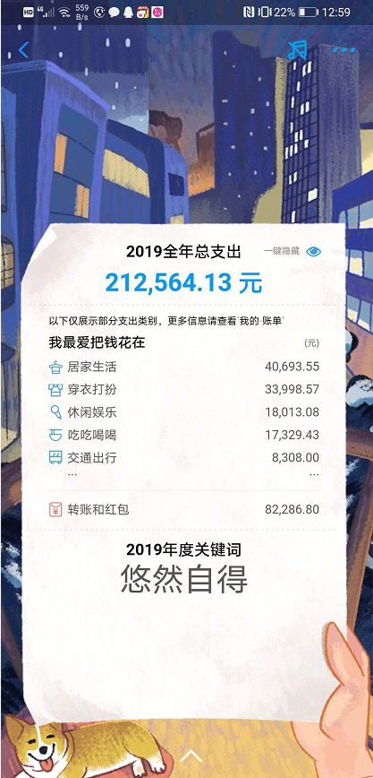 其实,在《支付宝2019年账单周一见,看看你今年花了多少钱》文章中,蛋壳儿已经提到过,你可以在自己的银行APP、微信、QQ等凡是有支付功能的APP中查看到自己2019年的账单,你可能会发现自己真的很能花钱。不知道大家都花了多少呢?不管怎样,希望我们2020年加油,挣更多钱,才会有更多钱来花。