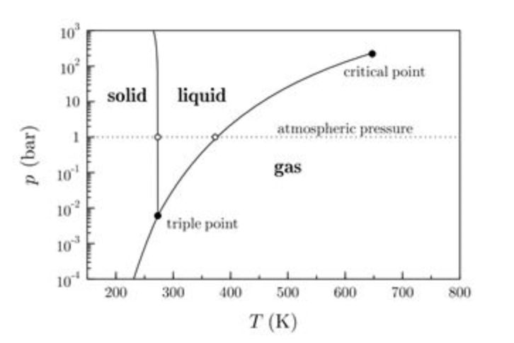 水的相图,描述的是水在不同温度和压力条件下的存在状态