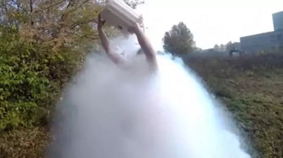 此外,由于液氮的廉价性(相同体积的液氮比相同体积的可乐还便宜),因此液氮也被科研爱好者“玩”出了新的高度。把活鱼扔进液氮,把岩浆倒进液氮,把可乐放进液氮,把开水倒进了液氮……众多的液氮实验充斥着视频网站,大家感兴趣可以自行搜索。2014年,当“冰桶挑战”风靡世界的时候,在液氮工厂工作的俄罗斯小伙Anton Konovalov更是疯狂的用液氮进行了一次“冰桶挑战”,他用-196℃的液氮浇到身上,但是液氮并没有给他造成冻伤。(小编提示危险请勿尝试)
