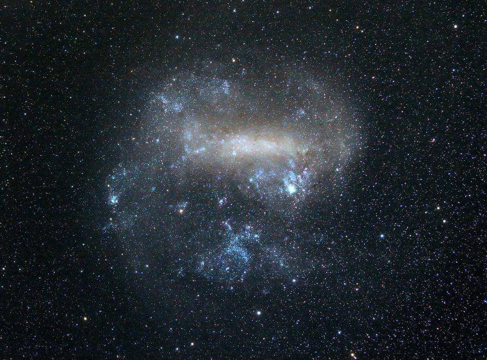 在我们所在的本星系群中,大麦哲伦星云是第四大的星系。在它的右侧,主星系下方,即是巨大的狼蛛星云恒星形成区。图片来源:美国国家航空航天局,来自维基媒体共享用户Alfa pyxisdis