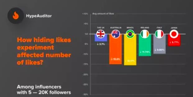 调查发现,在Instagram隐藏了点赞数据的国家,许多网红的知名度出现明显下降。/HypeAuditor