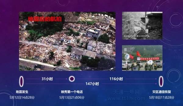 根据天通一号官网介绍,当时地面通信全部中断,基站全塌了,电话和手机都打不通。直到31个小时后,依靠国外卫星电话,重灾区映秀才和指挥部联系上,147小时后灾区通信才恢复。