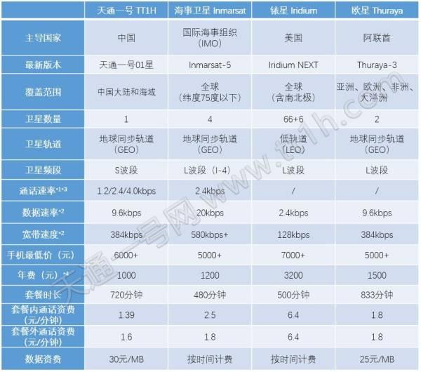 天通一号、海事卫星电话、铱星电话、欧星电话详细对比。