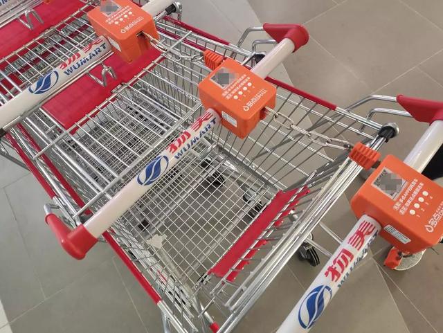 神奇的是,“ 物美 ” 还有一种带有扫码功能的购物车,从长相来看属于超进化Version. 的版本,从去掉了镣铐的队列方式就能看出它们的与众不同。