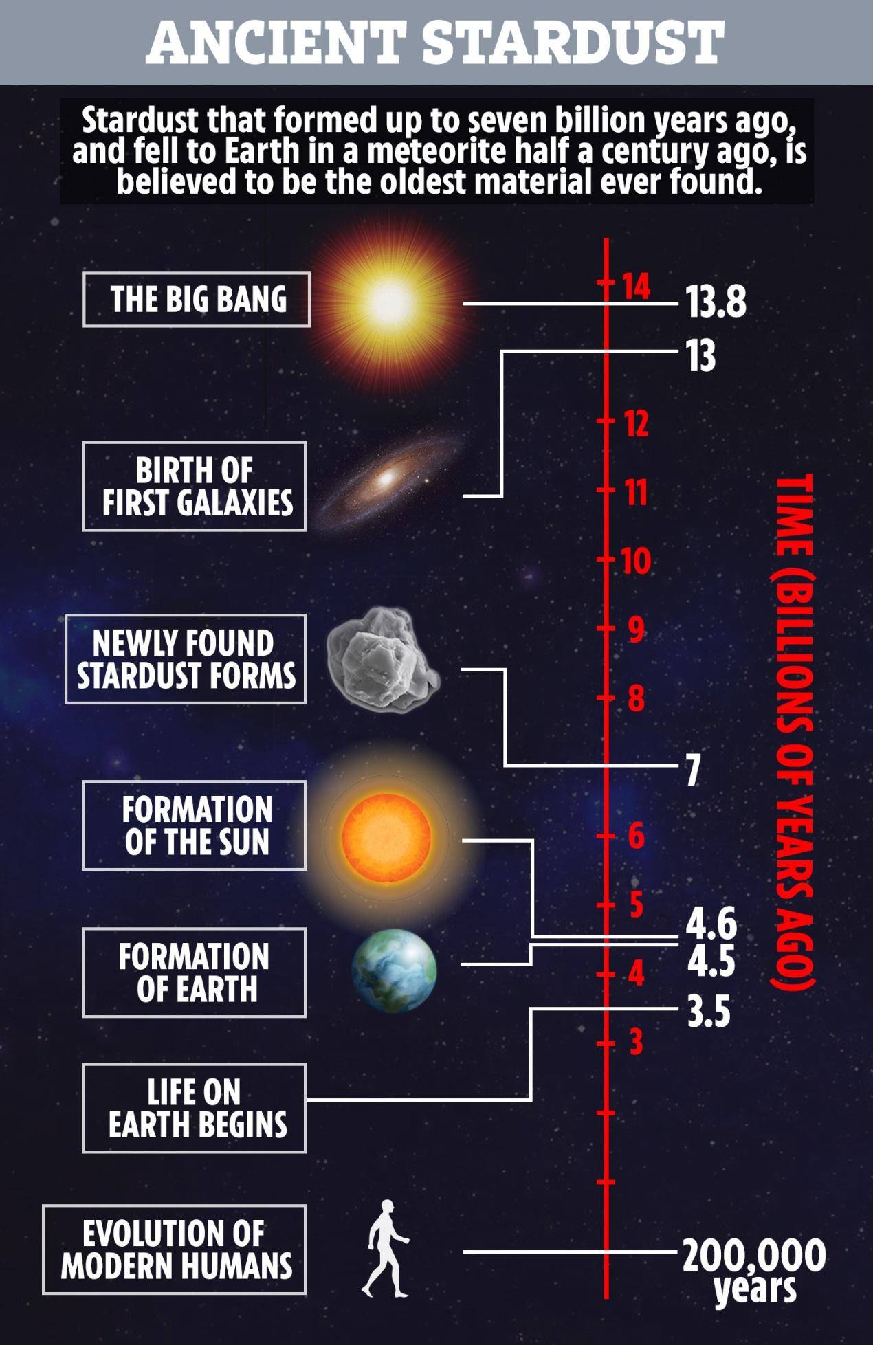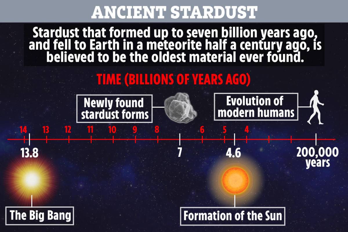 科学家最近发现了地球上最古老的物质:有70亿年历史的星尘,它隐藏在半个世纪前撞击地球的一颗巨大的岩质陨石中。