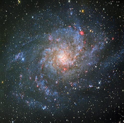 风车星系(M33)位于三角座。虽然它的震级相当于5.7级,但它分布在67‘乘41.5’的区域内。这使得它的表面亮度很低。咱们慢慢切换到高倍目镜,来研究其螺旋臂的浓度。