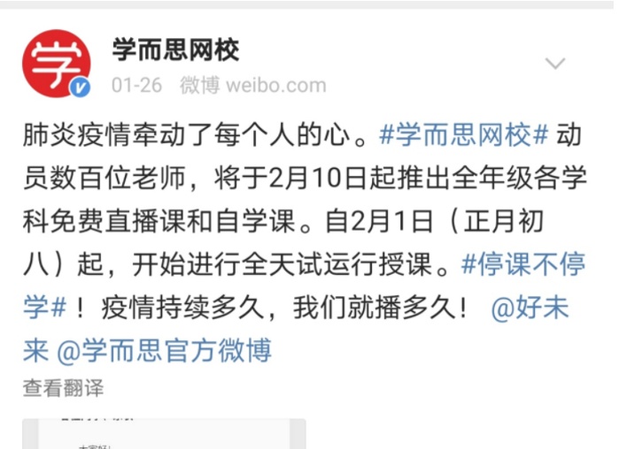 停课不停学,在线教育让“超长寒假”不孤单。学而思网校、作业帮、猿辅导等在线教育机构纷纷推出免费直播课。“疫情持续多久,我们就播多久。”学而思网校表示,免费直播课无需报名,用户只需下载学而思网校APP即可进入课程。