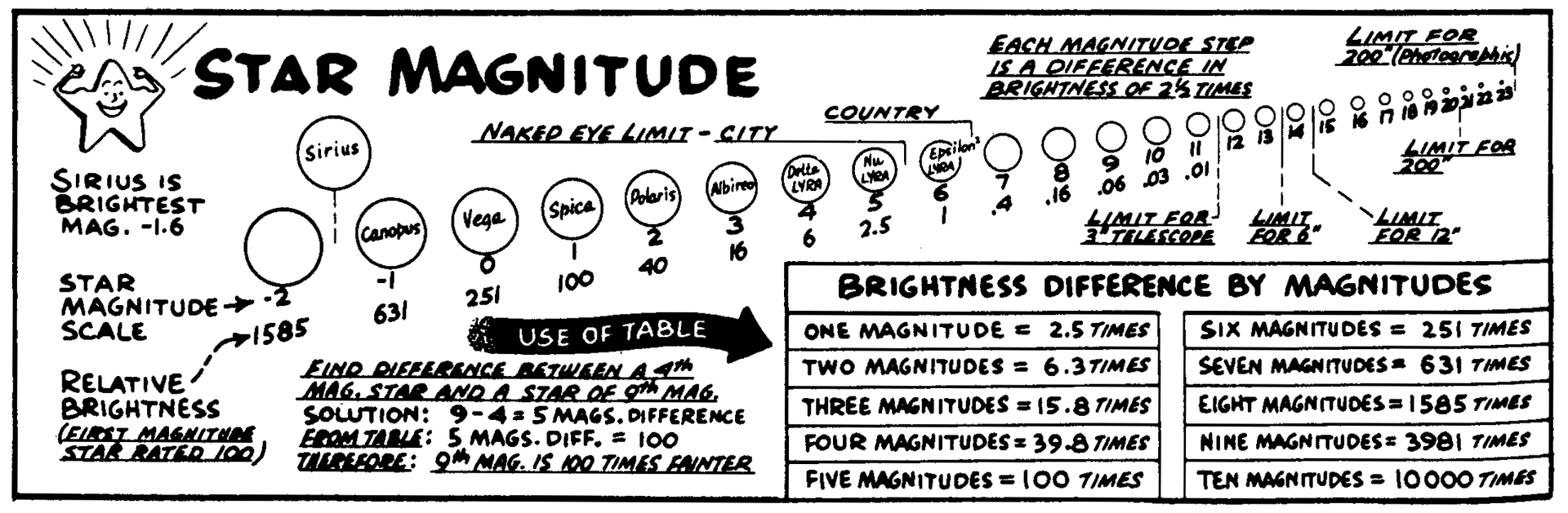 顺便说一下,这个示意图过于乐观了,因为在大多数城市里人们用裸眼观测星星亮度的极限更接近3等。