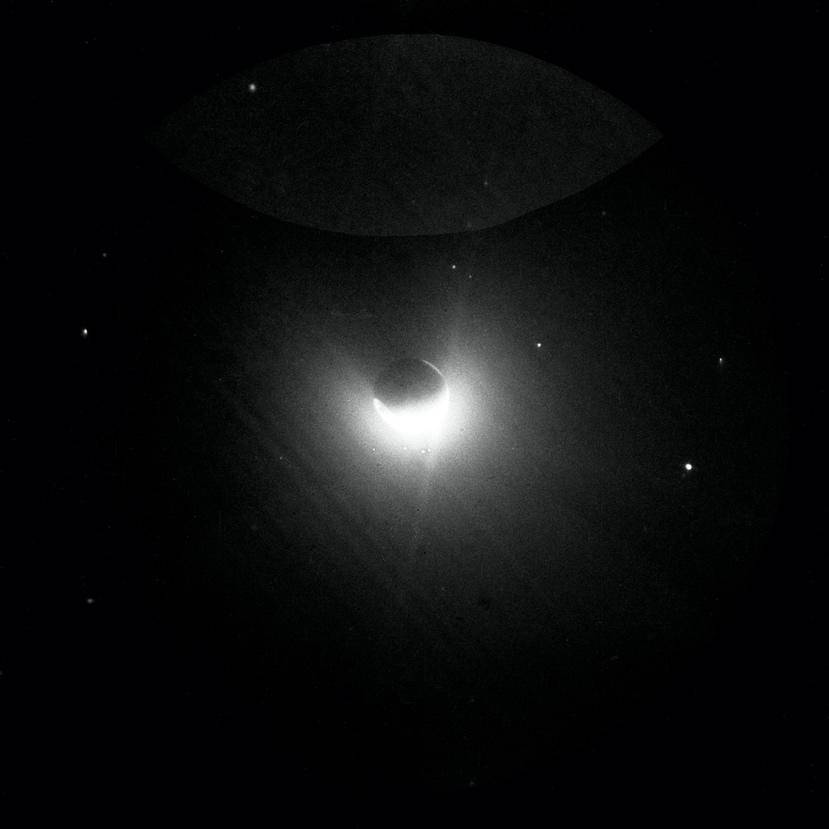 但是,也有一些由阿波罗号宇航员拍摄的图像里有别的恒星。不过因为前文中提到的原因——恒星不是他们的研究目标,所以图像里的恒星看起来也很暗淡,就像以下由阿波罗16号拍摄的紫外图像所显示的: