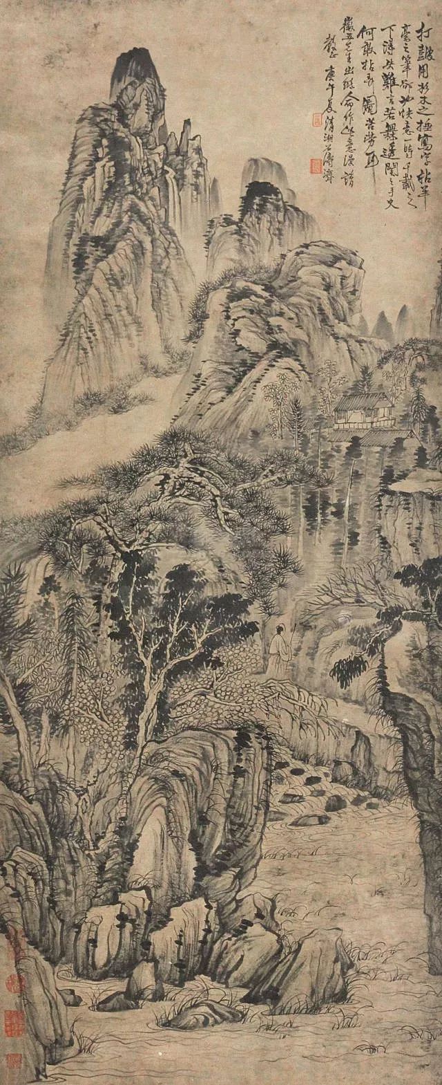 明代石涛画作《霜林扶杖图》