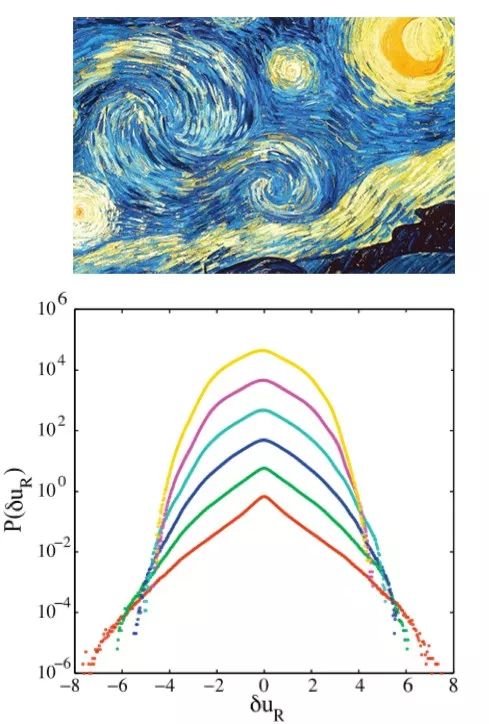 这不是科学家们第一次用流体公式来分析《星夜》了,2008年,墨西哥国立自治大学的Jose Luis Aragon等人就在《数学成像与视觉期刊》(Journal of Mathematical Imaging and Vision)上,以一篇《梵高激情画作中的湍流亮度》分析了蓝色天幕上那些亮点的亮度变化。得出的结论是,这些亮度波动的统计数据,似乎与安德烈•科尔莫戈罗夫的预测相符,只不过在这个研究中它们和亚音速湍流模型的分布更为符合。
