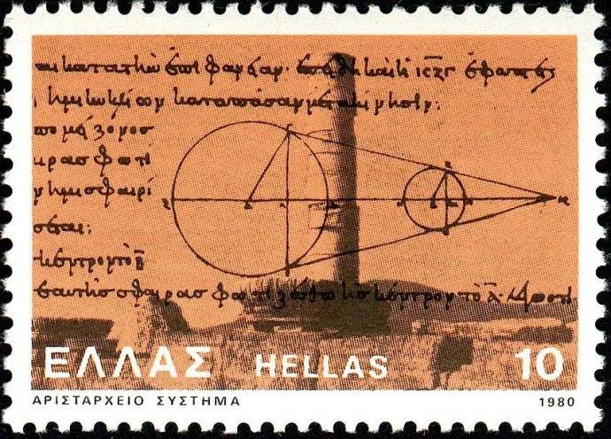 阿利斯塔克被称为古希腊第一个著名的天文学家,他用数学计算出太阳的半径比地球大很多(虽然不够精确)。所以,他认为是太阳在宇宙中心,地球围着太阳转,地球自转一圈为一天,地球围着太阳公转一圈为一年。