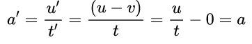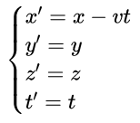 这个关系也不难,大家琢磨一下就能得到这个结果:x'=x-vt。