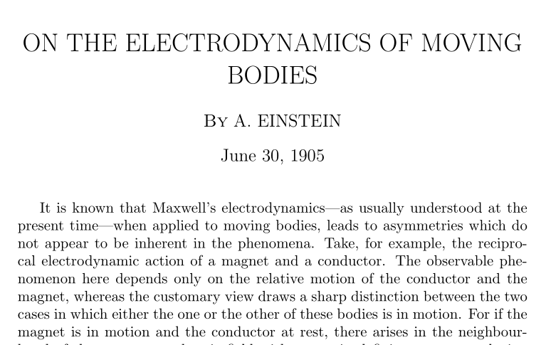 只要把麦克斯韦方程组和相对性原理之间的冲突解决了,狭义相对论的诞生就是水到渠成的事了。