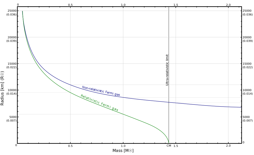 钱德拉塞克极限是通过相关状态变量的热力学公式进行计算的。但是由于它并不能解释电子接近光速的后果,所以它仍是非相对论情形。