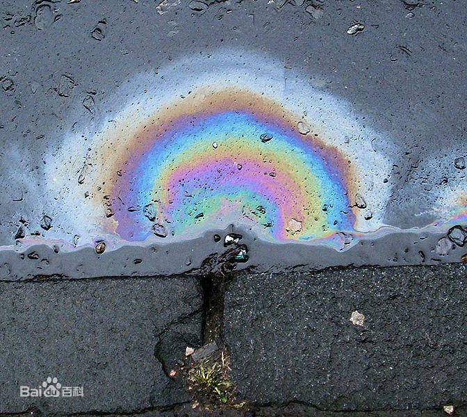 图源:百度百科来自太阳的平行光照射到这些液膜上,会在这层液体的上下表面都发生反射。我们最终看到的进入眼球的光就是薄膜的上下表面的反射光的叠加。这两束光波会发生干涉,使特定波长的光的反射率得到增强。所以薄膜的厚度就决定了薄膜看上去的“颜色”。这实际上就建立起了薄膜厚度-颜色的对应关系。而泡泡由于其上各个地方的液膜的厚度在不断随时间连续变化,所以每个位置的“颜色”就也在不断地改变。因而在我们看过去的时候,就好像“颜色在流动”一样。by LunaQ.E.R.