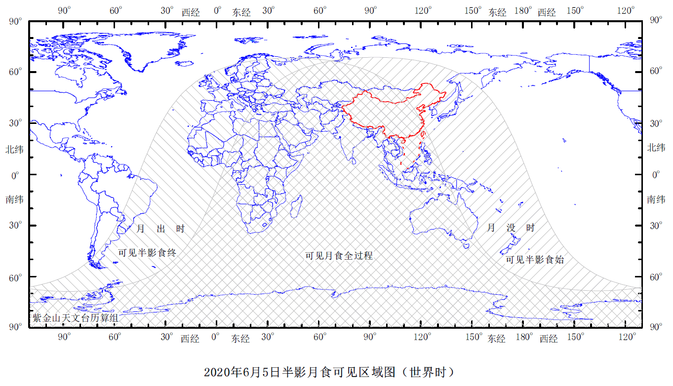 遗憾的是,只有一部分东西部地区的人可以观赏到月食。例如,欧洲的大部,亚洲,整个非洲以及南美洲的最南部地区。这些地方的人有机会在6月5日观赏到此次月食。