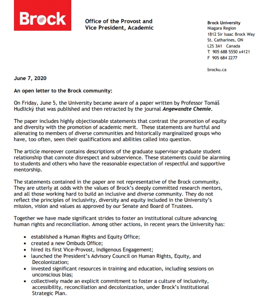 然而,这起事件的“始作俑者”哈德利基至今却并不认为自己错了。根据美国化学学会(ACS)旗下的《化学工程新闻快报》(CEN)的报道,哈德利基认为他的话被“断章取义”了,并称学界也有支持他的人,他还指控撤下他稿件的编辑和编委是在对他搞“言论审查”,是想毁掉他的职业生涯。