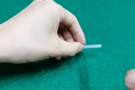 这就意味着,右侧绳子与吸管之间的摩擦力会变小,而左侧绳子与吸管的摩擦力会变大。这样一来,左侧的吸管无法滑动,而右侧的吸管则可以随意滑动。所以纸牌会绕着左侧吸管逆时针转动,从而使右侧吸管转到一个更高的位置。