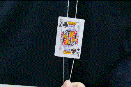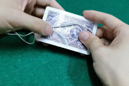 当我们把两侧的绳子同时拉紧时,两边绳子与吸管间的摩擦力可以抵消掉重力,同时,两边的力矩也会抵消掉,所以纸牌可以静止不动。