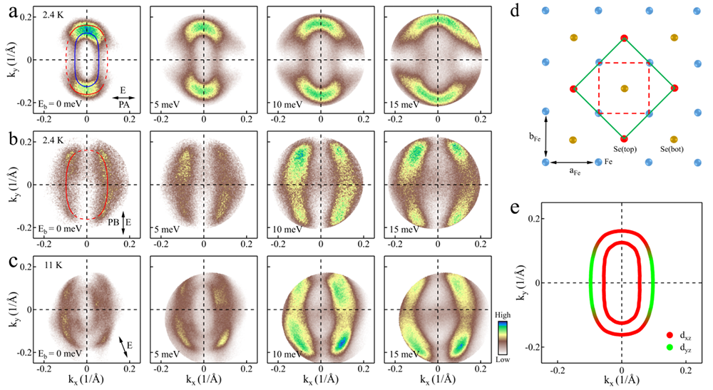 中国科学院物理研究所/北京凝聚态物理国家研究中心超导国家重点实验室周兴江研究组的李聪、赵林副研究员等,与物理所吴贤新博士、王乐博士、石友国研究员、胡江平研究员和向涛院士等合作,利用最新一代基于时间飞行能量分析器的激光角分辨光电子能谱仪,结合理论计算,发现了FeSe超导体全新的费米面结构,揭示了FeSe 中存在向列序之外未知对称破缺的证据。