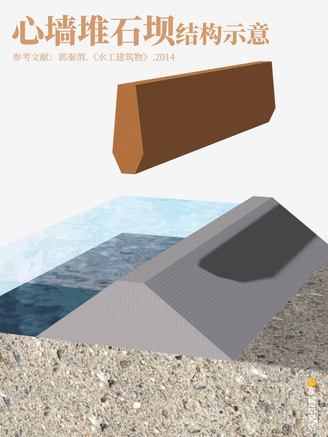 (心墙堆石坝结构示意,制图@罗梓涵/星球研究所)