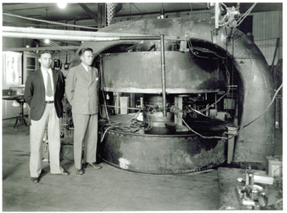 上世纪30年代,欧内斯特·劳伦斯(Ernest Orlando Lawrence)在美国建成了世界上第一台回旋加速器。回旋加速器的磁铁就是在圆柱形极头上缠绕线圈,使之产生垂直磁场,使粒子在进入磁场区域中后能够按照科学家的意愿行进。