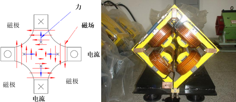 常温磁铁在通电后,通过不同形状的极面来产生不同形式的磁场,比如二极磁铁的极面是一个平面,四极磁铁的极面是一组完全对称的双曲面,六极磁铁的极面更复杂。