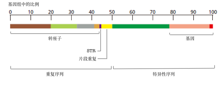 人类的基因组包含特异性序列和重复序列。重复序列甚至可以占到人类基因组的一半以上。|来源:Molecular biology of the cell