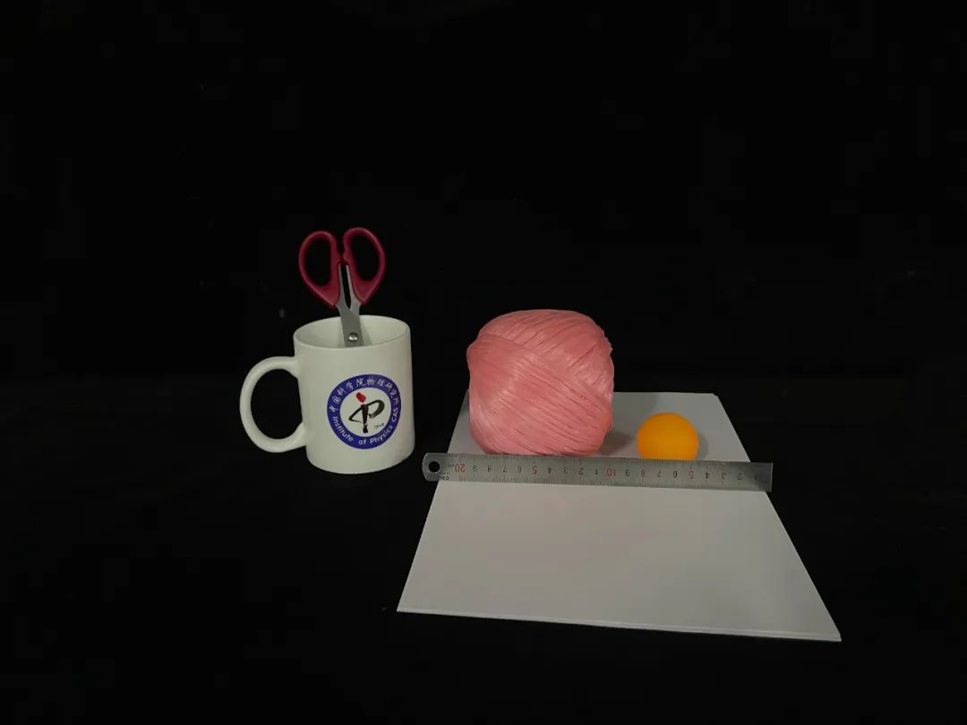 所标杯、剪刀、A4纸、直尺、小球(可用其他物品代替)