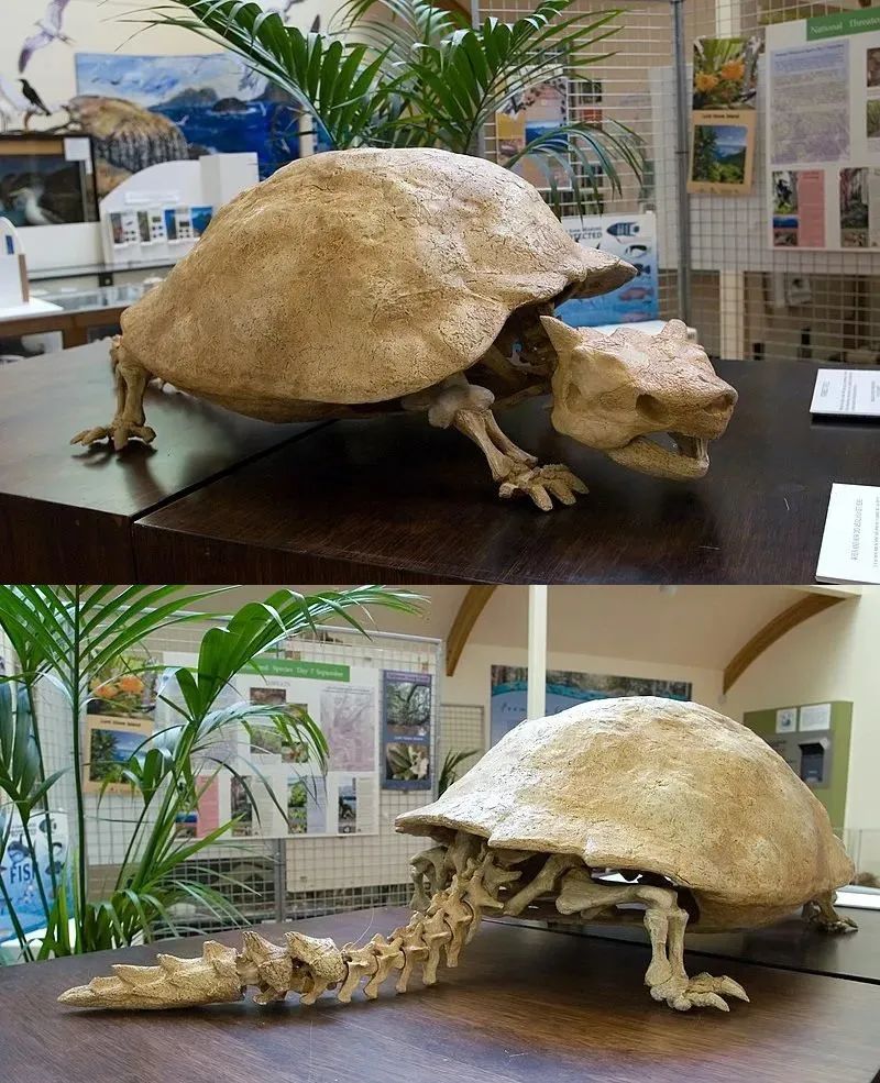 卷角龟Meiolania platyceps化石模型,尾巴上长着尖刺 | Fanny Schertzer / Wikimedia Commons