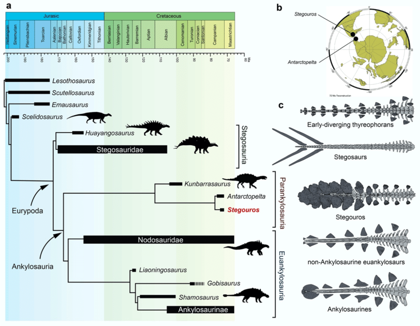 甲龙和剑龙的演化树和它们各具特色的尾巴 | Sergio Soto Acuña et al. / Nature (2021)