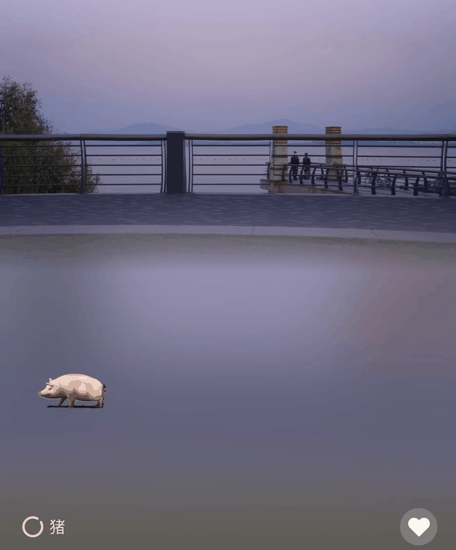 有人海边溜猪: