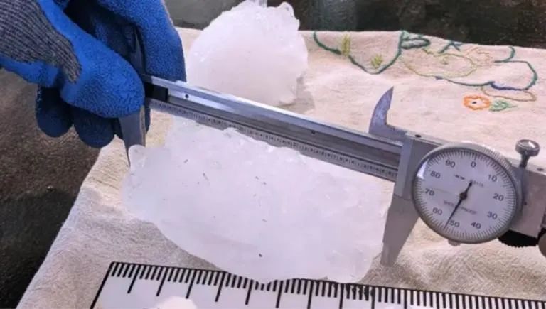 近年来,大型冰雹带来的灾害记录一直在增加。2018年,阿根廷的Villa Carlos Paz镇遭到了前所未有的冰雹袭击,一些冰雹的直径达18厘米,据称还有冰雹直径可能达到了23.7厘米。去年4月,在美国得克萨斯州的一场风暴后,人们收集到一块直径16厘米、重590克的冰雹。冰雹被保存在冰箱里,后来被确认为该州的新纪录。