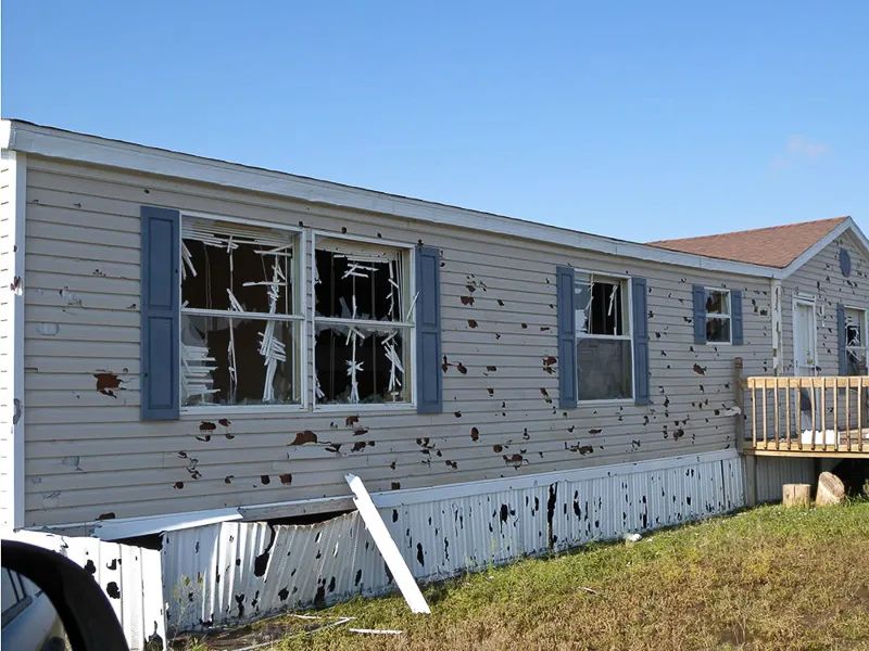 被冰雹破坏的建筑物墙面(图片来源:NOAA National Severe Storms Laboratory)