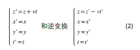 接下来我们仔细介绍一下如何用洛伦兹变换来解决上述佯谬。首先利用洛伦兹变换写出分别在实验室参考系S和运动参考系S′中测到的时空坐标(x,y,z,t)和(x′,y′,z′,t′)之间的变换关系: