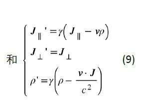 那么现在问题来了,上述两套准静态极限下的近似方程满足伽利略变换吗?关于这个问题的讨论,在20世纪的许多文献里是非常混乱的。在我们给出明确的回答之前首先要澄清一下这些问题,即“当我们在说某个方程组满足伽利略变换的时候,我们到底在说什么”?在许多文献[7,8]里,作者实际上是在说这样一个逻辑过程。第一步,对时空坐标做伽利略变换,然后问需要对电磁场和源场做什么样的相应变换可以保持变换后的方程形式不变,通过这一条件得到场和源的变换关系。这么做其实是在反推洛伦兹变换中场和源的变换方式在满足上述准静态条件时的近似形式。但问题是源场,也就是电荷密度和电流密度,可以由微观带电粒子的坐标和运动速度完全确定,所以它们的变换形式是可以通过伽利略变换直接得到的,不必通过电磁学方程不变这个条件反推。那么,只有通过上述过程反推出来的电荷密度和电流密度的变换形式与伽利略变换直接得到的一致,才可以说这样的近似方程组满足伽利略变换,如果不一致则说明这里面有不自洽之处,源的变换关系不能通过伽利略变换得到。