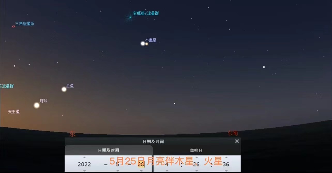 李稳介绍,因为这四颗行星都比较亮,所以在太阳出来之前,向东边到东南的低空看,用肉眼就能看到这四颗行星。
