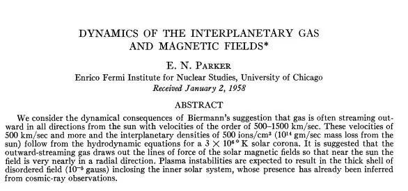 1958年帕克关于太阳风的论文(https://doi.org/10.1086/146579)