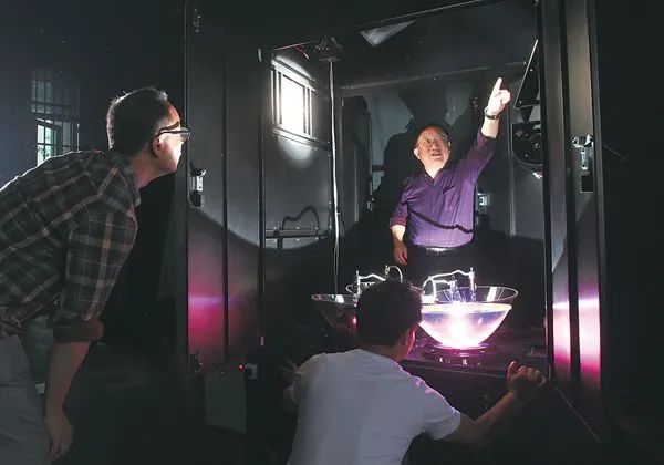 2018年5月,胡国华向记者展示组装完成的太阳光模拟器